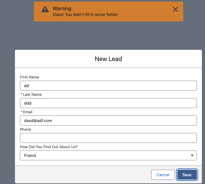 이제 LeadRecordCreationForm에서 saveRecord를 구현 해봅시다.
